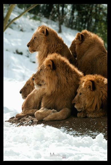真ん中で埋もれているライオンは暖かそうですww